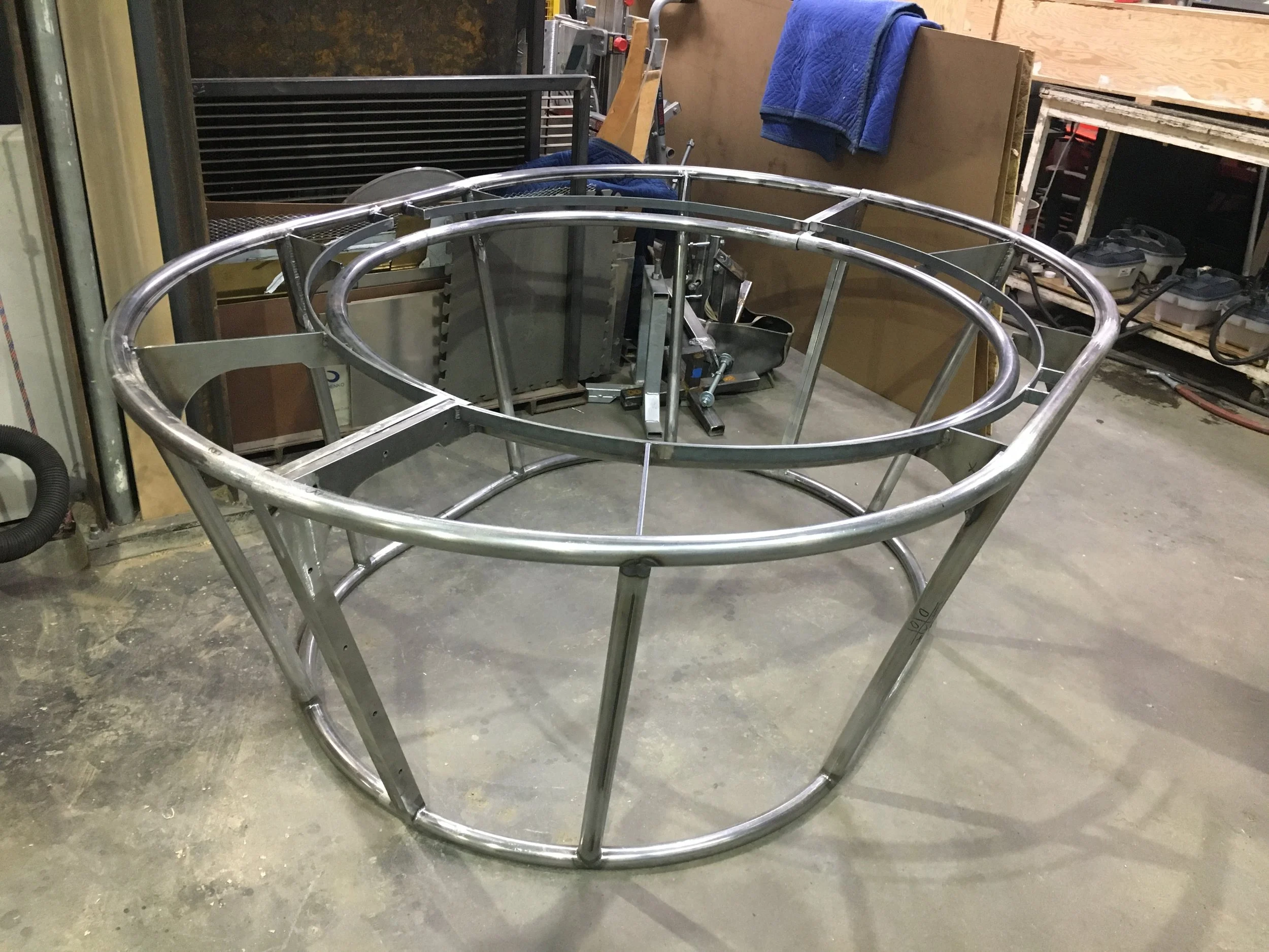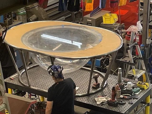 618 Design made two versions of the Waterbowl, which had to be elegant, rock-solid for dynamic load, and made for interaction with the human body. Precise bending of compound curves, perfect coping, and absolute symmetry were required for this theatrical piece, which is used regularly at a premier venue in Times Square. Lara Jacobs Rigolo is a balance and circus practitioner renowned for her work which includes time with Cirque du Soleil.